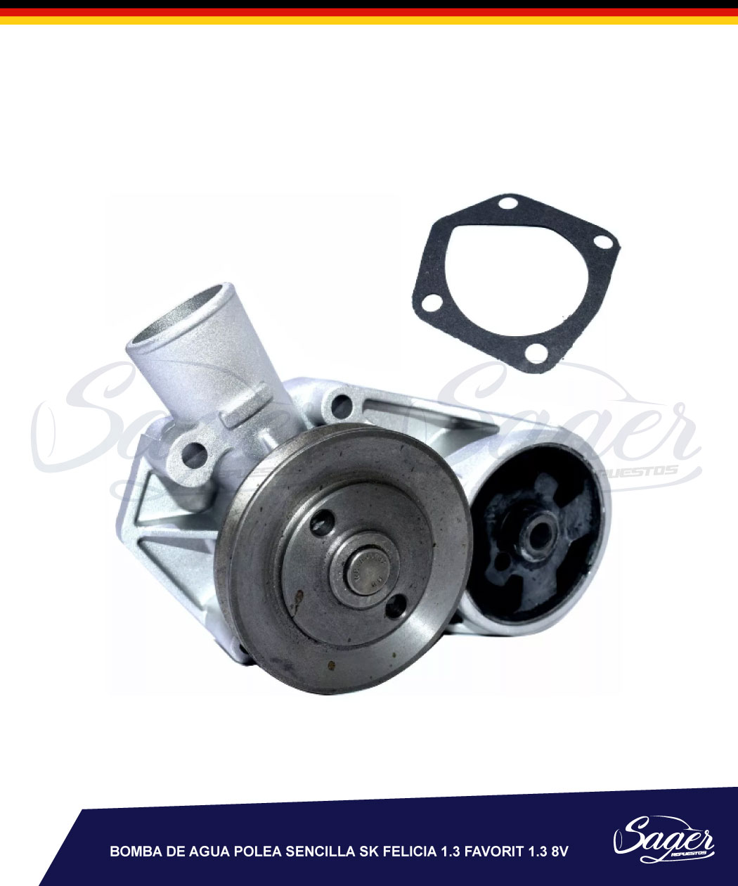 bomba de agua polea sencilla sk felicia 1.3 favorit 1.3 8v componente que hace circular el anticongelante a través del circuito de refrigeración del motor desde y hacia el radiador, evita roturas en la estructura y componentes del motor por el aumento de la temperatura, generado por la combustión interna.