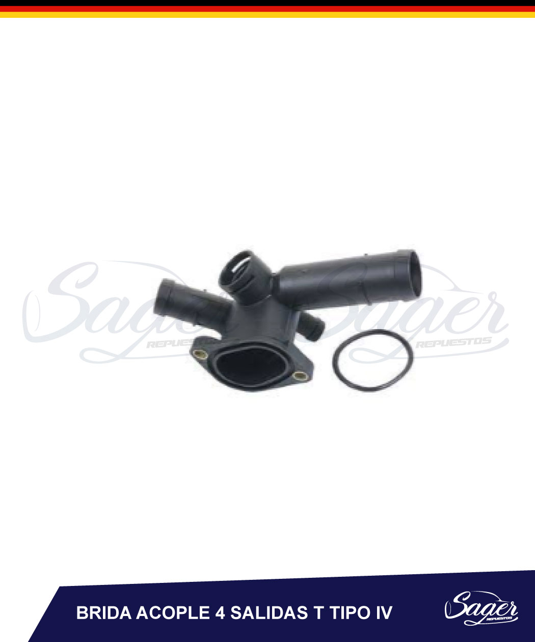 brida acople adaptador (tubo conector que une) 4 salidas para que se mantenga en funcionamiento el circuito de refrigeración del motor desde y hacia el radiador, para motores Volkswagen, Audi, Seat.