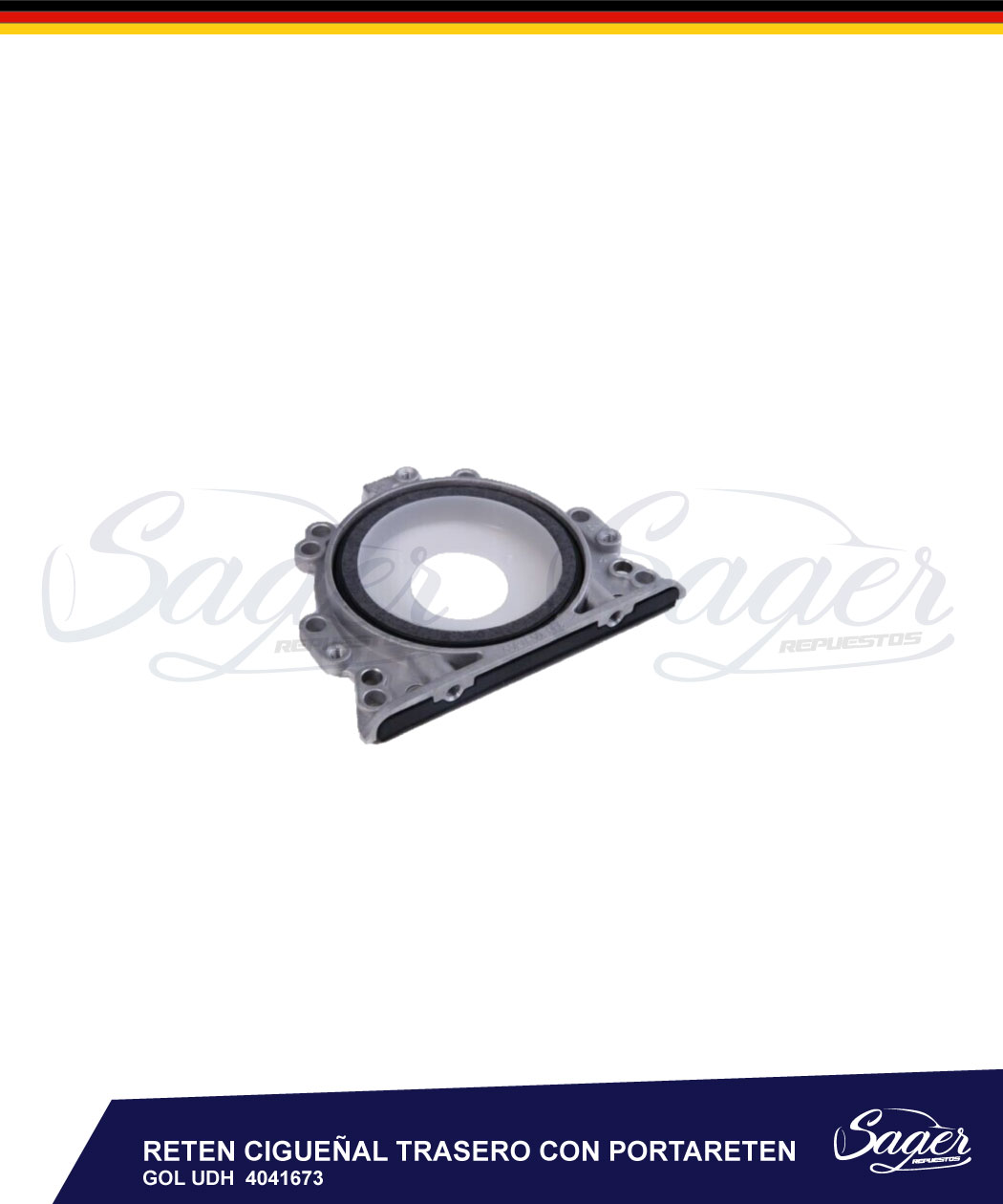 Reten Cigueñal Trasero Con Portareten Gol Udh / 4041673 Pieza que funciona como sello mecanico para evitar el intercambio no deseado de fluidos entre el interior y exterior del cigüeñal